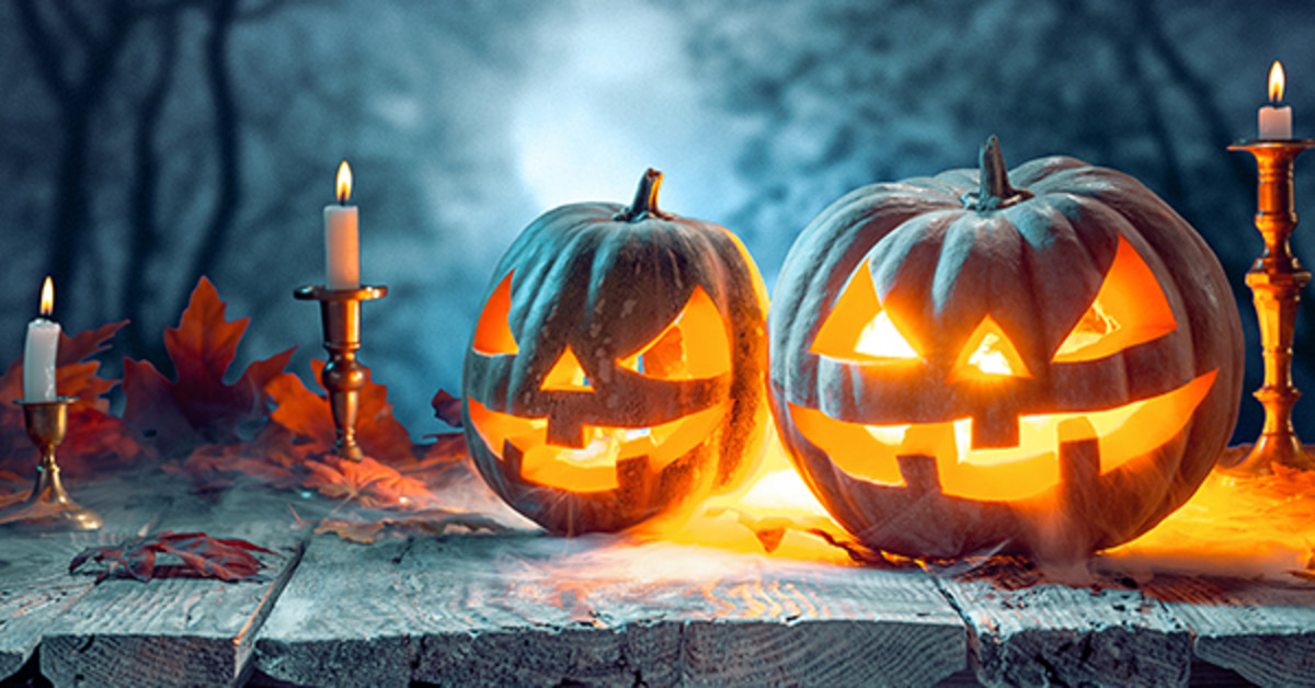 Lysende gresskar utenfor hus frister Halloween utkledde barn til å å gå rundt og ringe på dører og si knask eller knep for å samle inn godterier. Gå i små grupper og med dei du er saman med til vanleg. Den som opnar døra er den som delar ut snop.